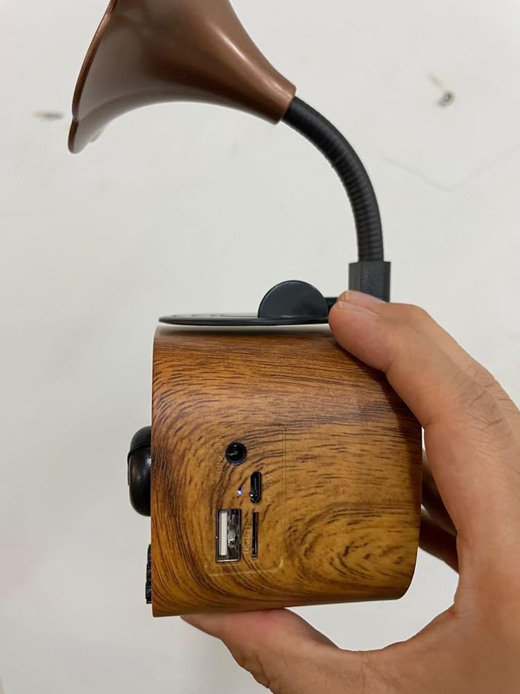 Crafted with a solid wooden-finish base and a classic horn design, this piece looks straight out of a period film set. The moment you connect your device, it transforms into a powerful Gifting Arc wireless speaker that fills your room with warm, rich audio.